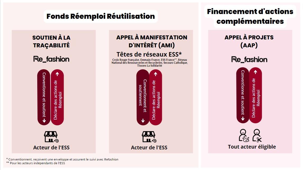La loi AGEC prévoit la mise en place de deux dispositifs de financement dédiés au réemploi et à la réutilisation pour la filière des textiles et chaussures. Retrouvez sur cette page l'ensemble des informations et modalités à destination des acteurs du réemploi.